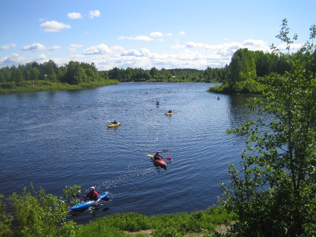 Oulujoella järjestetään opastettuja retkiä kajakeilla sekä intiaanikanooteilla. Rentouttavalla retkellä on aikaa ihailla jokivarren maisemia!